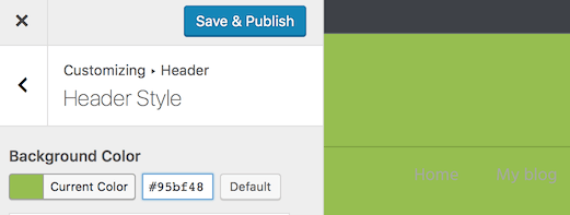 You then change the header background color in Customize > Header > Header Style: