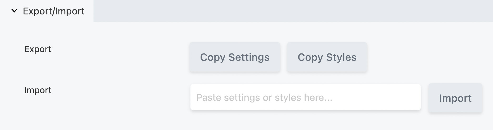 The Export/Import section in the Advanced tab lets you copy and paste module settings or styles into another module.