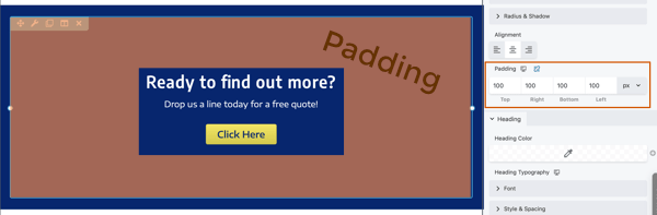 Padding (responsive) The distance from the module's border to its content, in px, em, or % units. You can enter these values per device size by clicking the device icon or entering Responsive Editing Mode. See this article for more information about responsive editing.