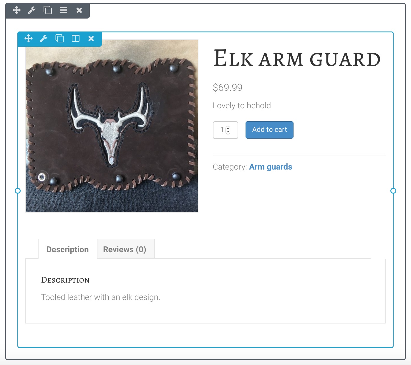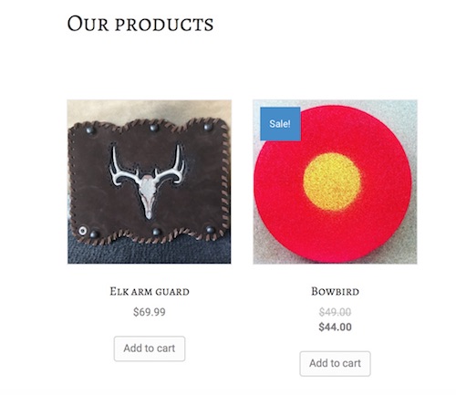 The display is what you'd see on an archive page, not on a true product page. There's the title of the product, the price, and an Add to Cart button displayed under the featured image. Clicking this item takes you to the product page.