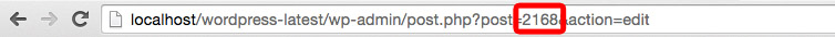 The code example below uses an ID of 2168 this is the ID of your Beaver Themer layout. To get the ID, copy the post number from the URL in your browser’s address bar, as shown in this screenshot.