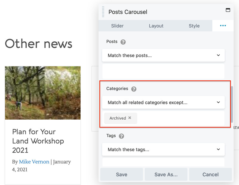 - Add a Posts, Posts Slider, or Posts Carousel module to your layout.