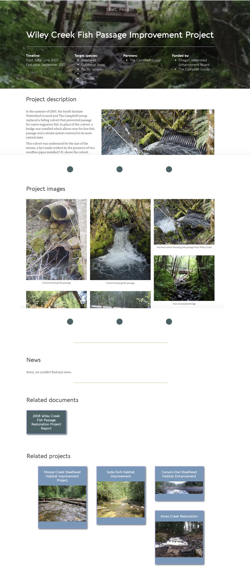 News and documents related to the project are posted to other areas of the site so there's a custom taxonomy called Projects that ties all the information together. The News and Related Documents sections on the summary page use Posts modules with various filters to display information pulled from these locations.